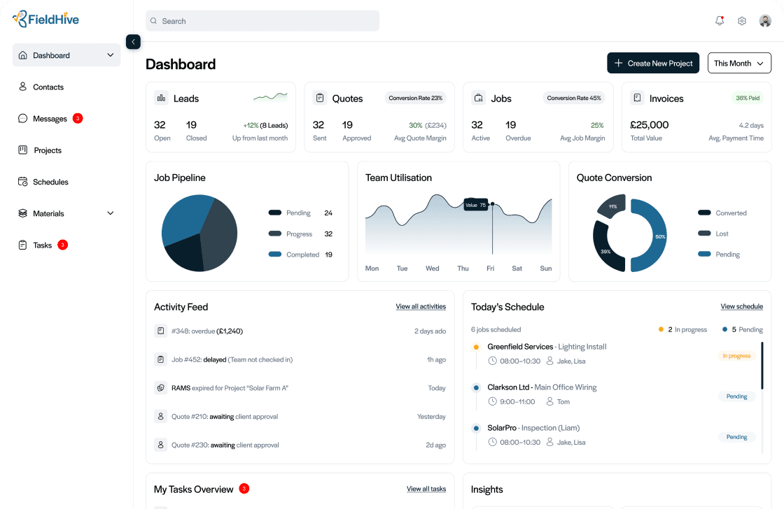 FieldHive was built to fix that. One simple platform that connects every step — from the first enquiry to getting paid.